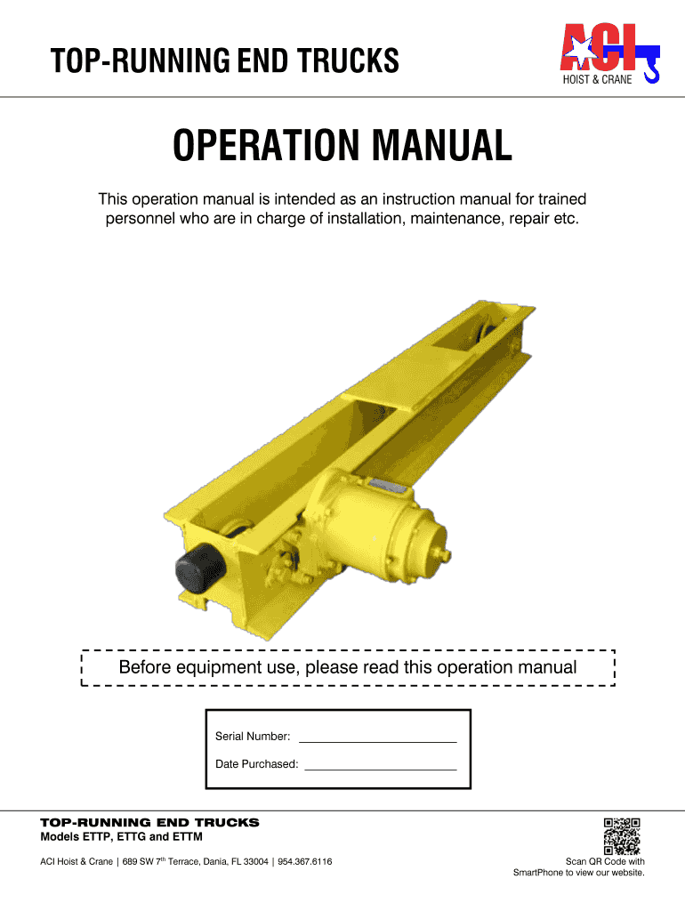 RUNNING END TRUCKS OPERATION MANUAL This operation manual is intended as an instruction manual for trained personnel who are in charge of installation, maintenance, repair etc. Before equipment use,