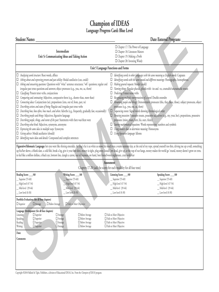 3435 Language progress chart Layout 1 6×28/10 10:42 AM Page 1 Champion of IDEAS E L Language Progress Card: Blue Level Student Name: Date Entered Program: Chapter 17: The Power of Language Chapter