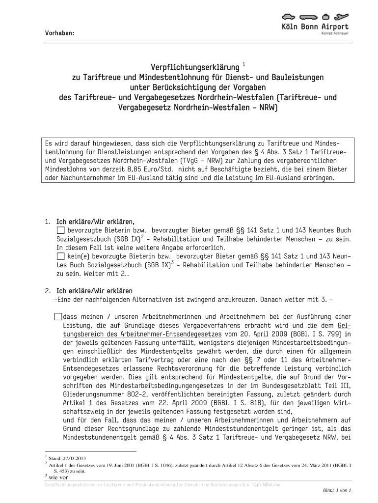 Forsaken: Verpflichtungserklrung 1 EU Tariftreue UND Mindestentlohnung for Dies UND Bauleistungen under Bercksichtigung her Organ DES Tariftreue UND Vergabegesetzes NordrheinWestfalen (Tariftreue