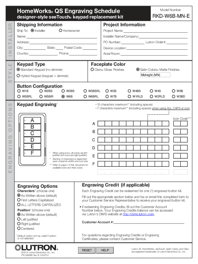 How to fill out HomeWorks® QS Engraving Schedule