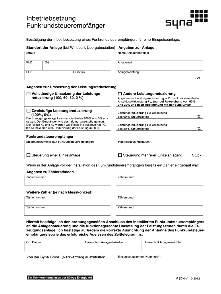 Inbetriebsetzung Funkrundsteuerempfnger Betting her Inbetriebsetzung lines Funkrundsteuerempfngers for and Einspeiseanlage. Standout her Engage (BEI Wind park bergabestation) Annabel our Engage Straw