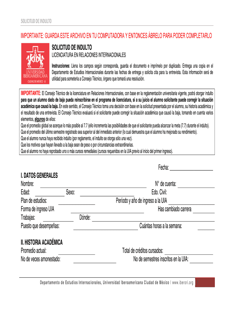 Get the free Formato para solicitar indulto - Departamento de Estudios ... - iberori