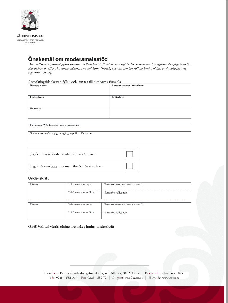 nskeml om modersmlsstd form can be filled out online or in physical form by providing the required information about the mother tongue education program.