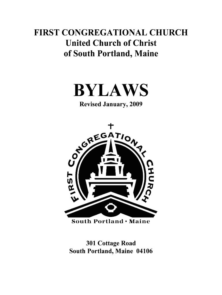 FIRST CONGREGATIONAL CHURCH United Church of Christ of South Portland, Maine BYLAWS Revised January 2009 301 Cottage Road South Portland, Maine 04106 TABLE OF CONTENTS ARTICLE 1 GENERAL PROVISIONS..................................................................................