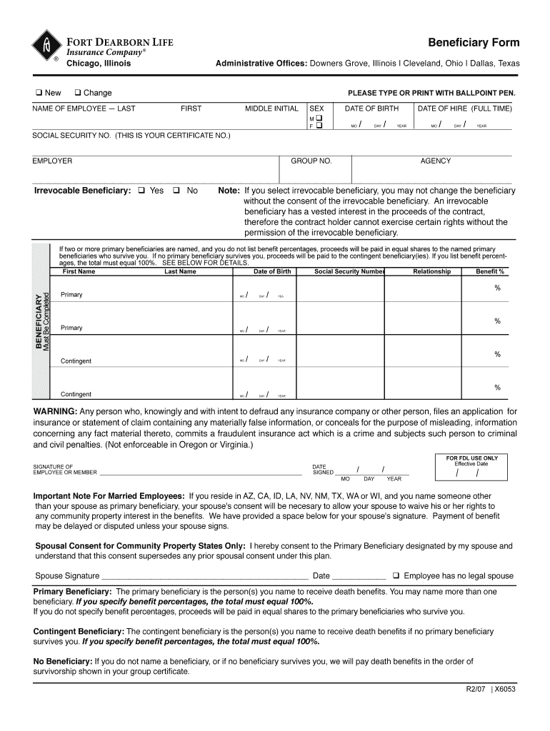 Who needs to fill out the Fort Dearborn Life Beneficiary Form?