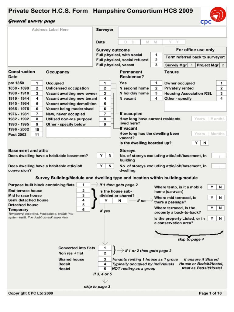 The Private Sector HCS Form is a survey template used by property surveyors to assess the condition and amenities of residential properties in the private sector.