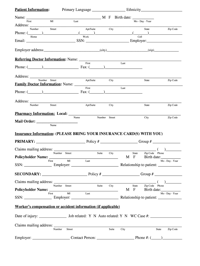 Edit your patient intake forms 2012 form online