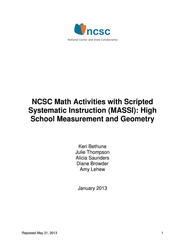 NTSC Math Activities with Scripted Systematic Instruction (MASS): High School Measurement and Geometry Keri Bethune Julie Thompson Alicia Saunders Diane Broader Amy Le hew January 2013 Reposted May
