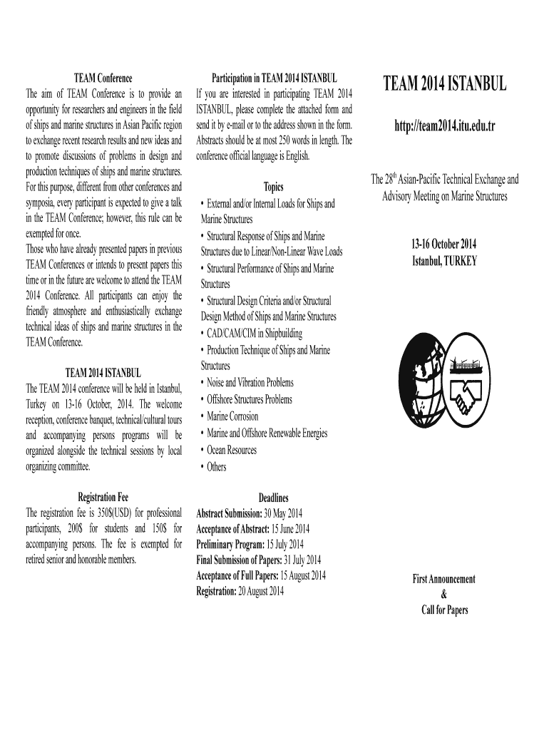 Get the free TEAM Conference Participation in TEAM 2014 ISTANBUL TEAM - jasnaoe or
