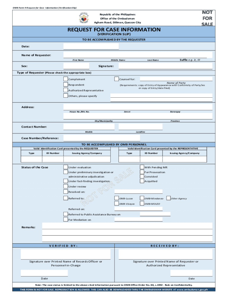 Get the free OMB Form 4-Request for Case Information (Verification Slip)