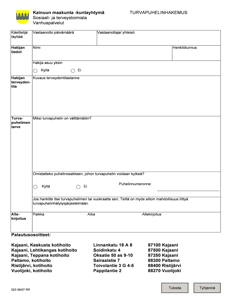 Painful magenta kuntayhtym Social JA terveystoimiala Vanhuspalvelut Ksittelij TTT Vastaanotto river Hainan tie dot TURVAPUHELINHAKEMUS Vastaanottaja/ Yates Mimi Henkiltunnus Haifa ASU skin Kill EI