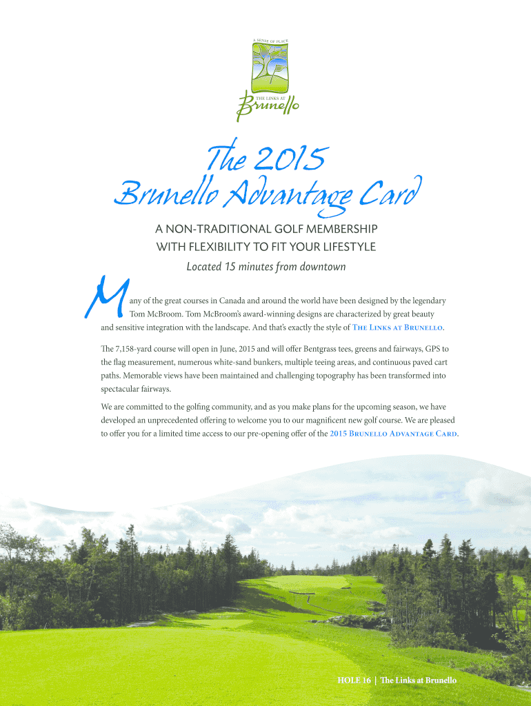 The 2015 Brutally Advantage Card A NONTRADITIONAL GOLF MEMBERSHIP WITH FLEXIBILITY TO FIT YOUR LIFESTYLE M Located 15 minutes from downtown any of the great courses in Canada and around the world