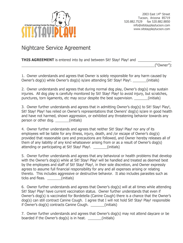 Get the free Nightcare Service Agreement - Sit Stay Play