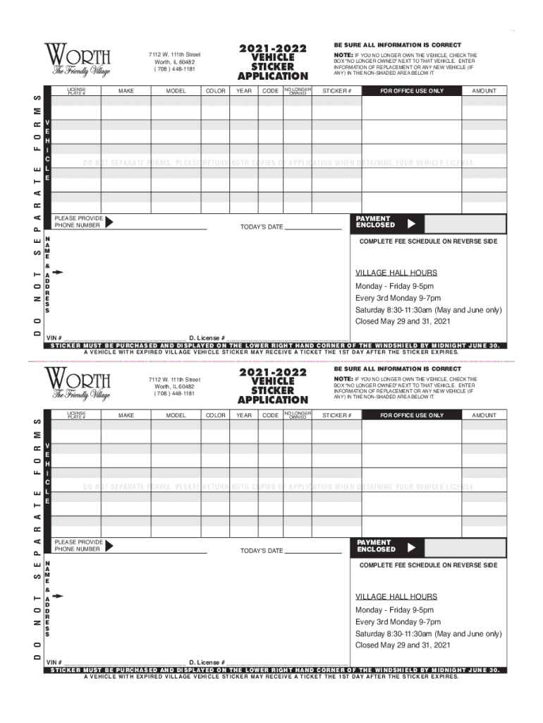 Get the free Vehicle bSticker Applicationb - Worth