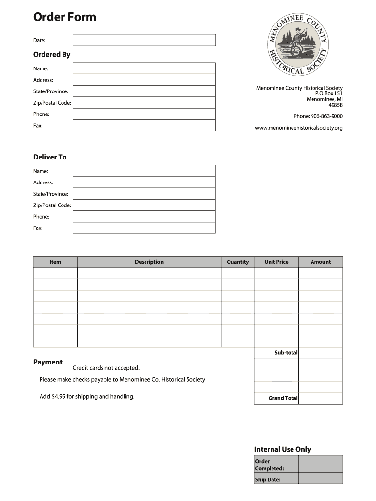 Get the free Name Address StateProvince ZipPostal Code Phone Fax Deliver To - menomineehistorical...