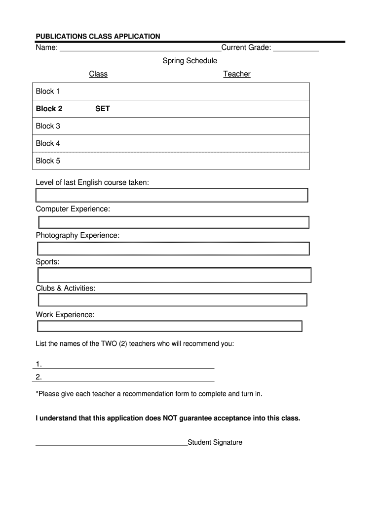 Get the free Publications Class Application