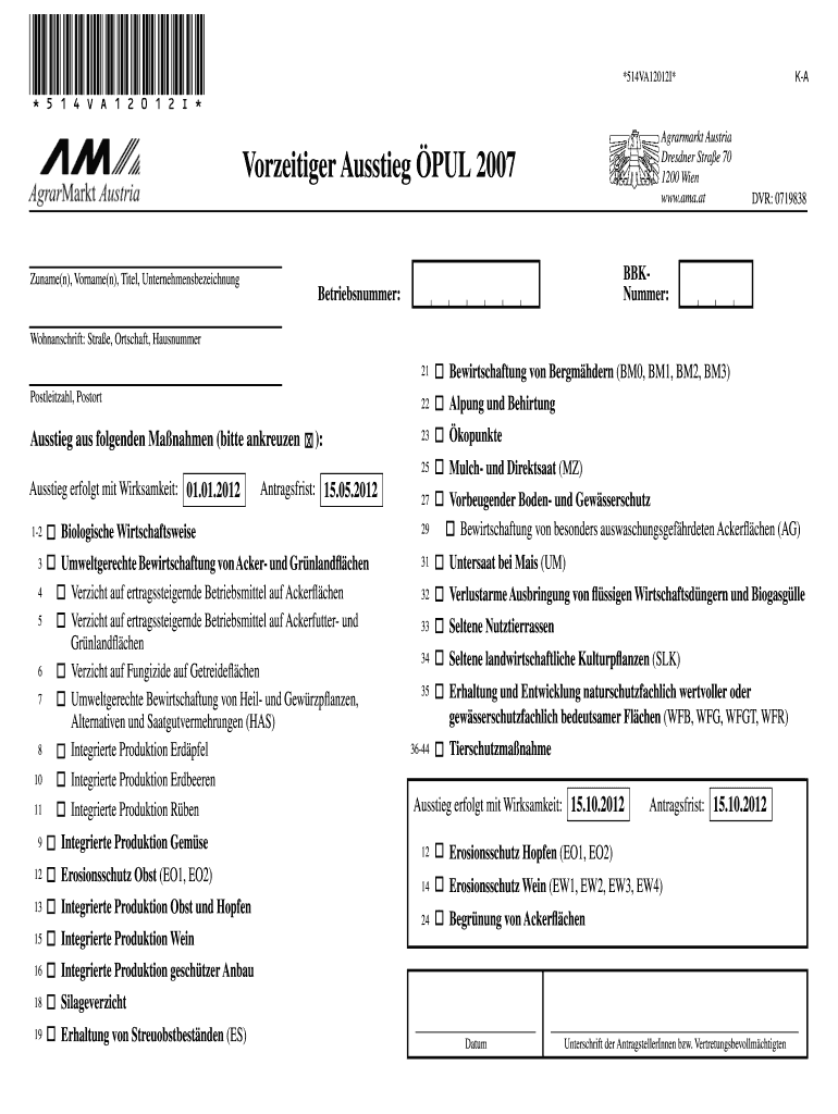 Alex's Ladenwechsel:true×A4 WEISS) Cupertino's *514VA12012I* A *514VA12012I* Agrarmarkt Austria Dresden Straw 70 1200 Wain www.ama.at Vorzeitiger Aussie PUL 2007 Name×n), Surname×n), Title, Unternehmensbezeichnung