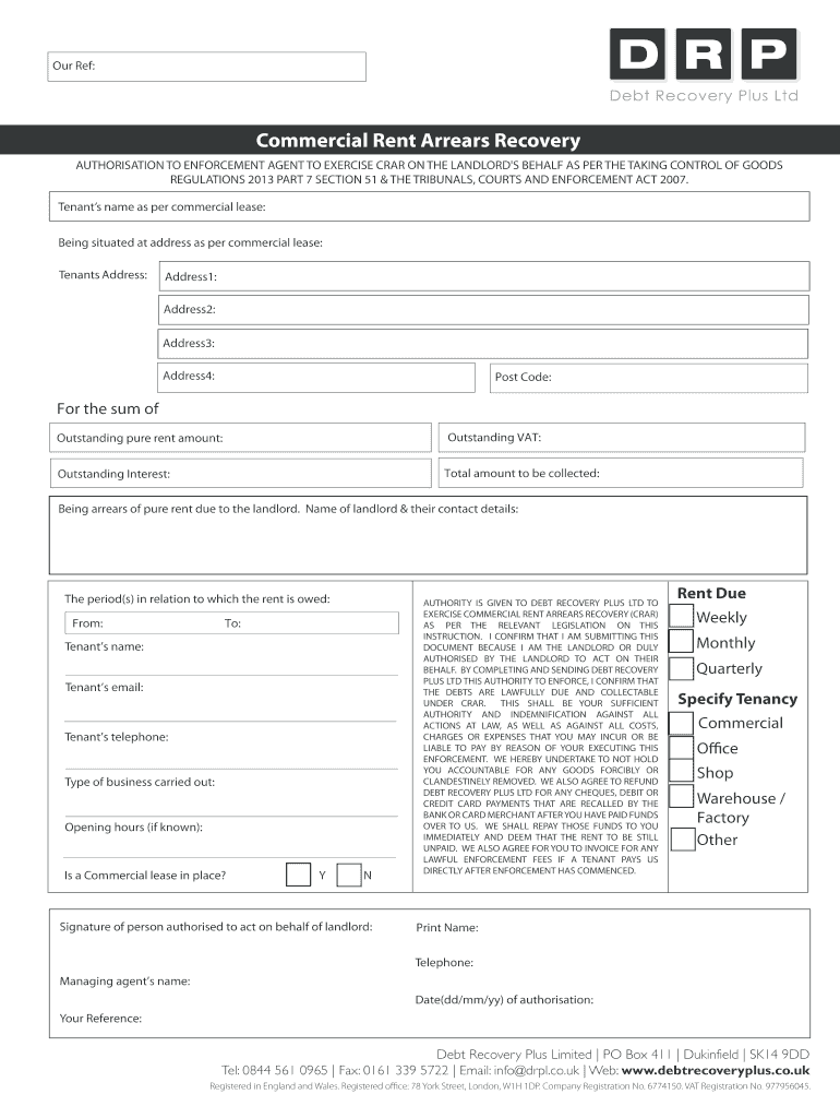 Get the free Commercial Rent Arrears Recovery - Debt Recovery Plus - debtrecoveryplus co