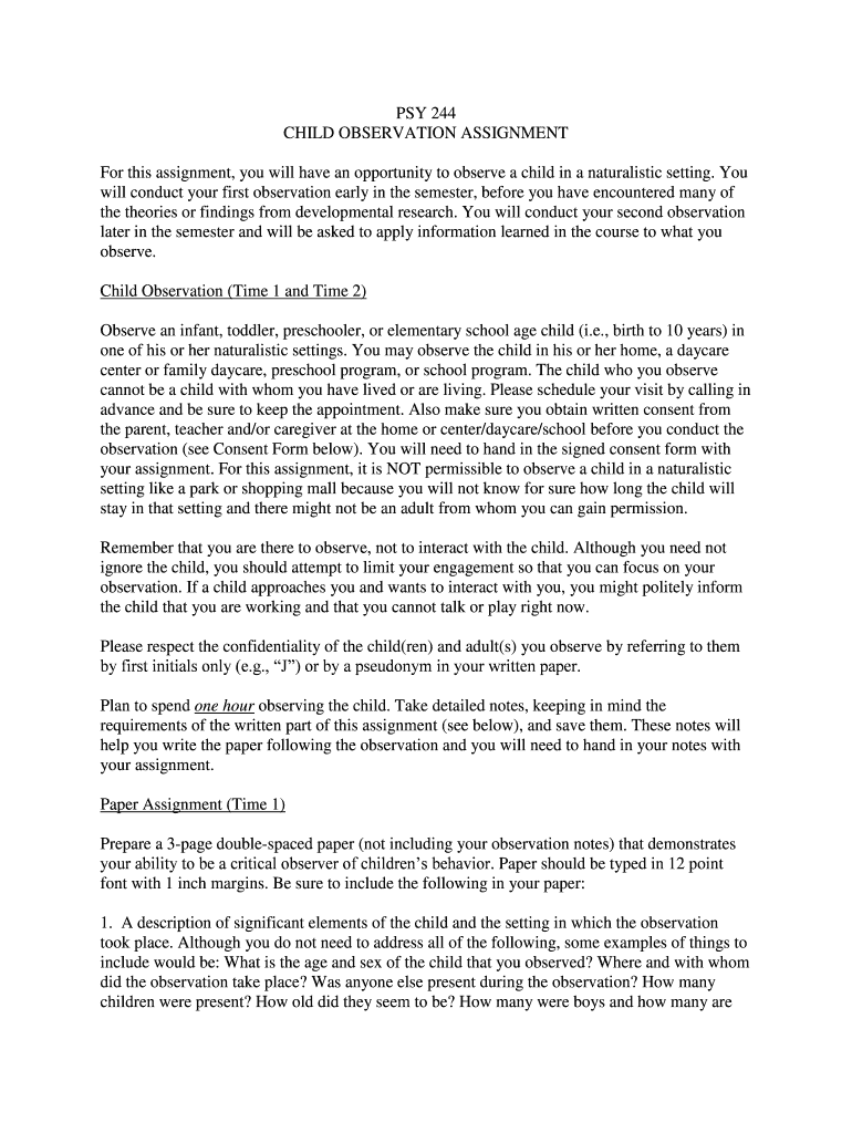 Fill out your child observation assignment child online with pdfFiller!