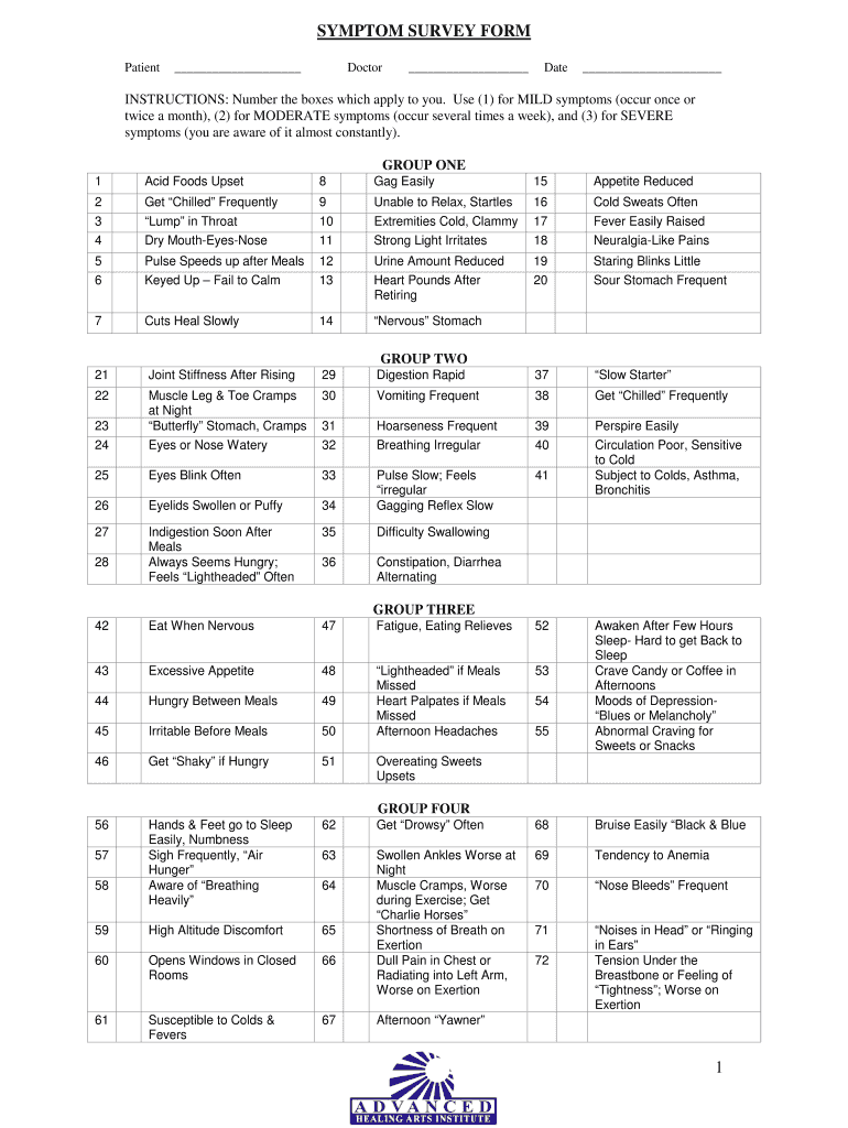 Get the free SYMPTOM SURVEY FORM - badvancedhealingbbcomb
