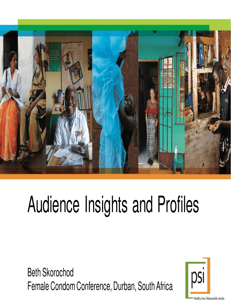 Audience Insights and Profiles Beth Scorched Female Condom Conference, Durban, South AfricaYouve segmented your audience. Now what? Audience profile: What is it? Vivid picture of the target audience;