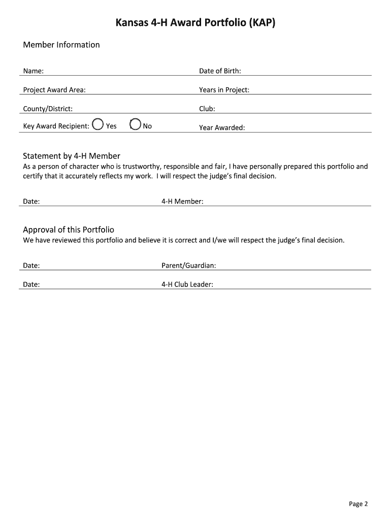 Kansas×4 'H×Award×Portfolio(MAP)% ! Instructions×for×organizing×the×Kansas×4 'H×Award×Portfolio(MAP)% Complete!this!form!and!submit!a!separate!award!portfolio!for!each!project!or!award!program.!!