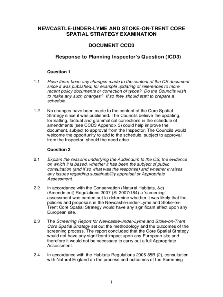 Get the free NEWCASTLE-UNDER-LYME AND STOKE-ON-TRENT CORE SPATIAL STRATEGY EXAMINATION. Instructi...
