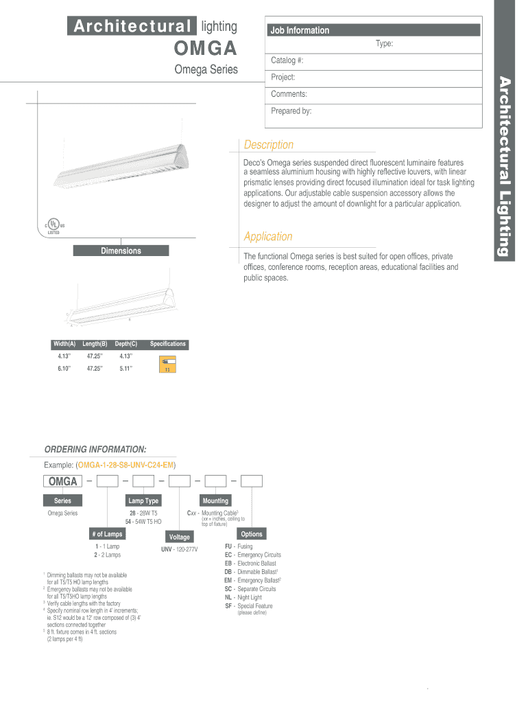 Architectural lighting Job Information OLGA Type: Catalog #: Project: Comments: Prepared by: Description prismatic lenses providing direct focused illumination ideal for task lighting applications.