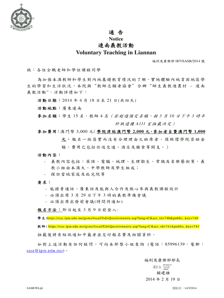 Get the free Notice Voluntary Teaching in Liannan - webapps ipm edu