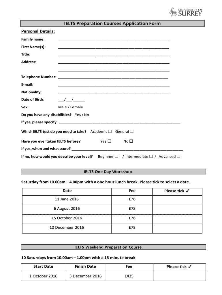 Get the free BIELTSb Preparation Courses bApplicationb Form - surrey ac