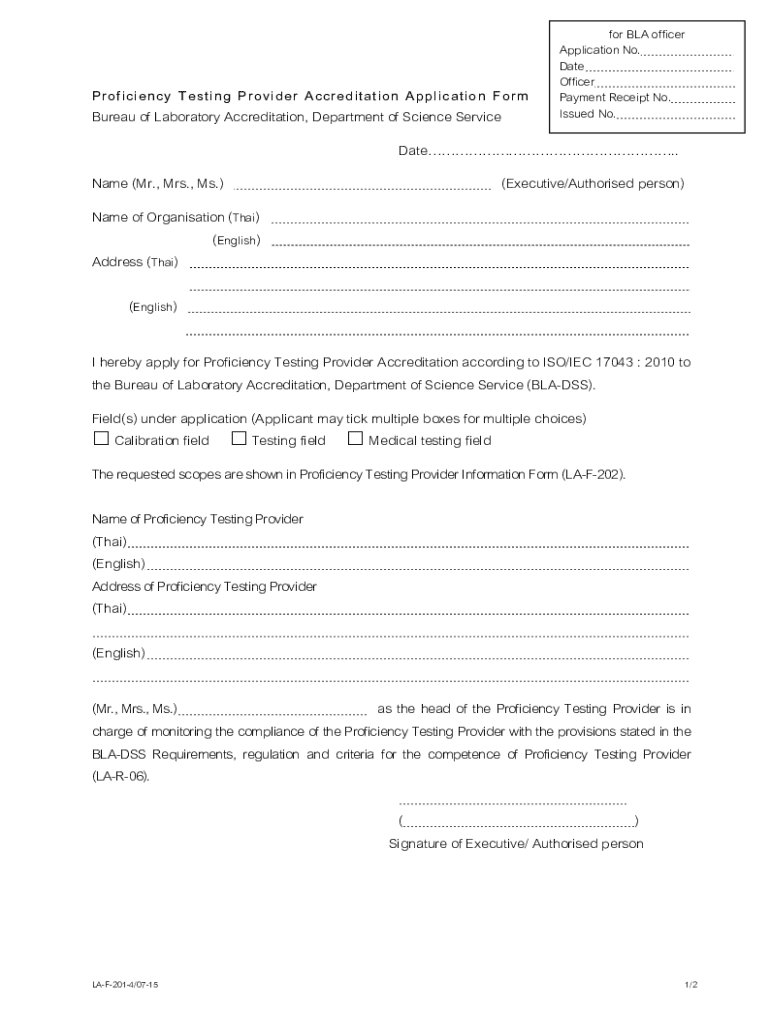 Proficiency Testing Provider Accreditation is not the form you're looking for?Search for another form here.
