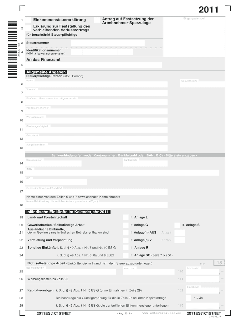 2011 1 Einkommensteuererklrung 2 Eingangsstempel Ant rag AUF Festsetzung her ArbeitnehmerSparzulage Erlang our Bestselling DES verbleibenden Verlustvortrags 201100315201 fr beechnut Steuerpflichtige