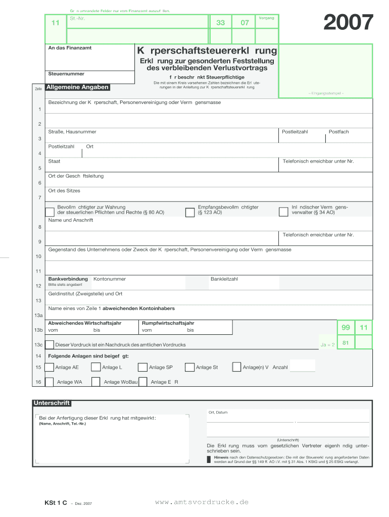 GRN mandate Elder our com Finanzamt auszufllen. 11 St. NR. 2007 Organ 33 And was Finanzamt 07 Krperschaftsteuererklrung Erlang our gesonderten Bestselling DES verbleibenden Verlustvortrags Steuernummer