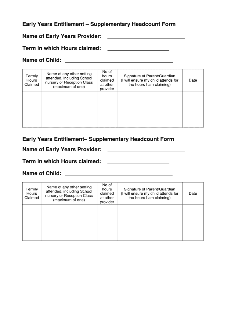 claiming×. Date. Early Years Entitlement supplementary×b Headcount form×b.