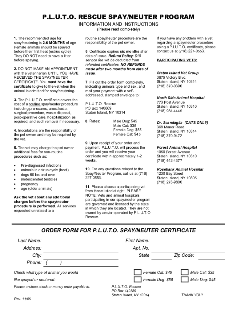 How to fill out P.L.U.T.O. RESCUE SPAY/NEUTER PROGRAM
