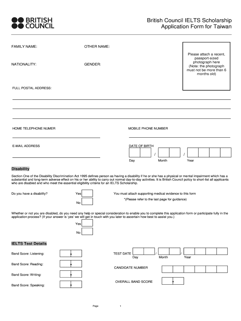 Get the free British Council IELTS Scholarship Application Form for Taiwan - britishcouncil org