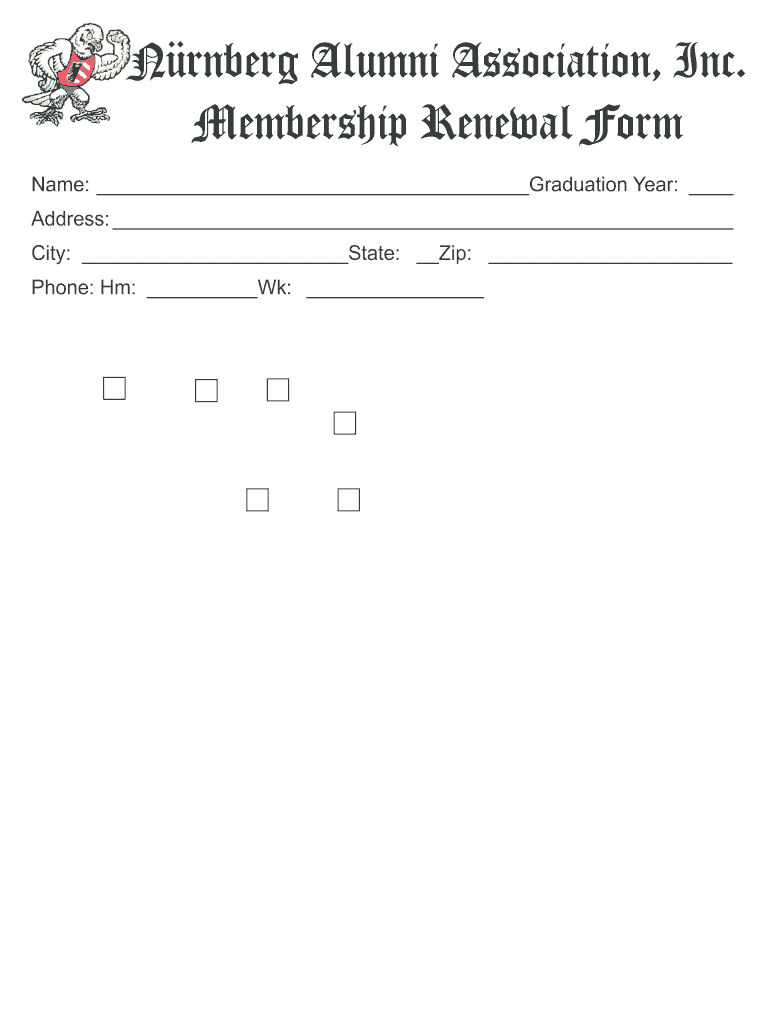 Get the free Nrnberg Alumni Association Inc Membership Renewal Form - bonairpc