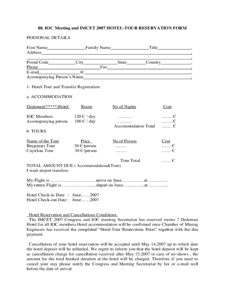 Hotel-Tour Reservation Form is not the form you're looking for?Search for another form here.
