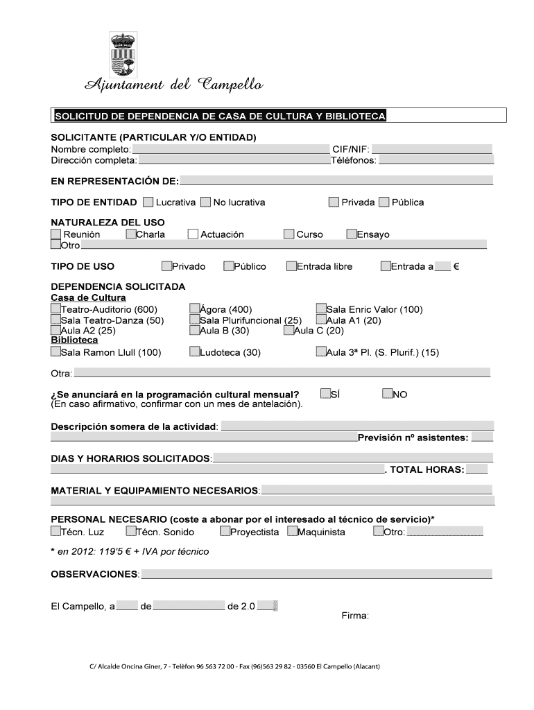 Obtener el gratis Ficha solicitud dependencias Casa de Cultura y Biblioteca - elcampello