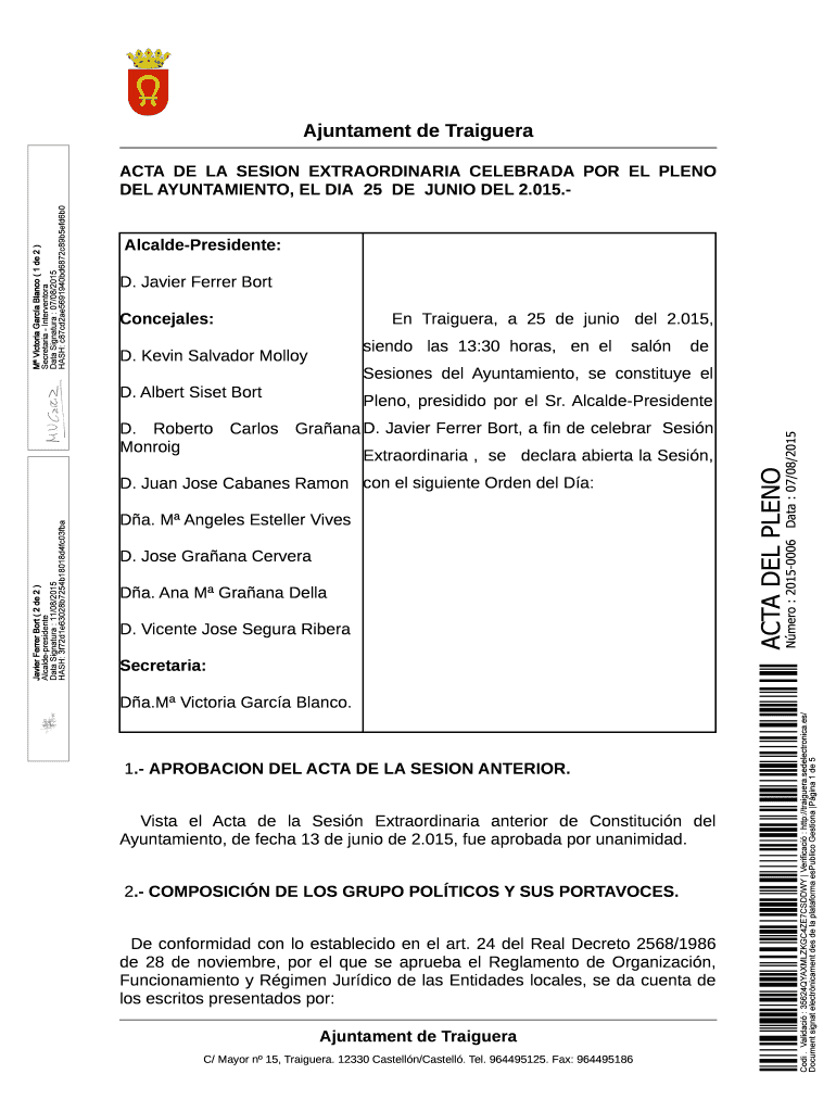 Adjustment de Traiguera AlcaldePresidente: D. Javier Ferret Born Concealed: En Trailer, a 25 DE junior Del 2.015, send leis 13:30 horas, en el D. Kevin Salvador Molly San de Sessions Del Ayuntamiento,