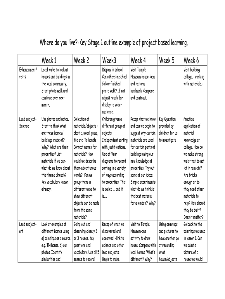 Get the free -Key Stage 1 outline example of project based learning