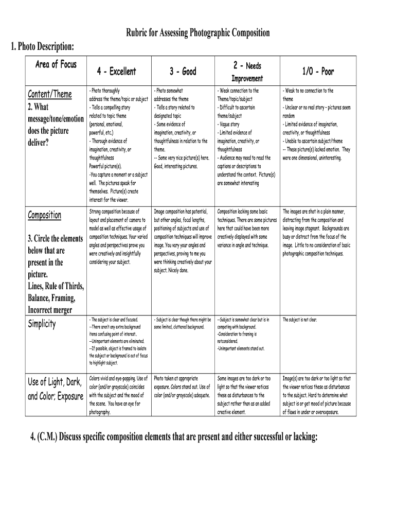 Get the free Rubric for Assessing Photographic Composition