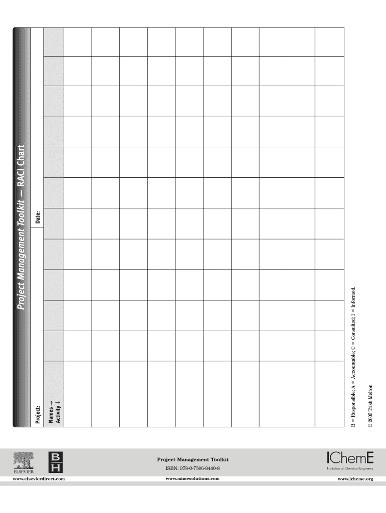 Project Management Toolkit ISBN: 9780750684408 www.elsevierdirect.com www.mimesolutions.com www.icheme.org 2005 Trish Melton R Responsible; A Accountable; C Consulted; I Informed. Names Activity Project: