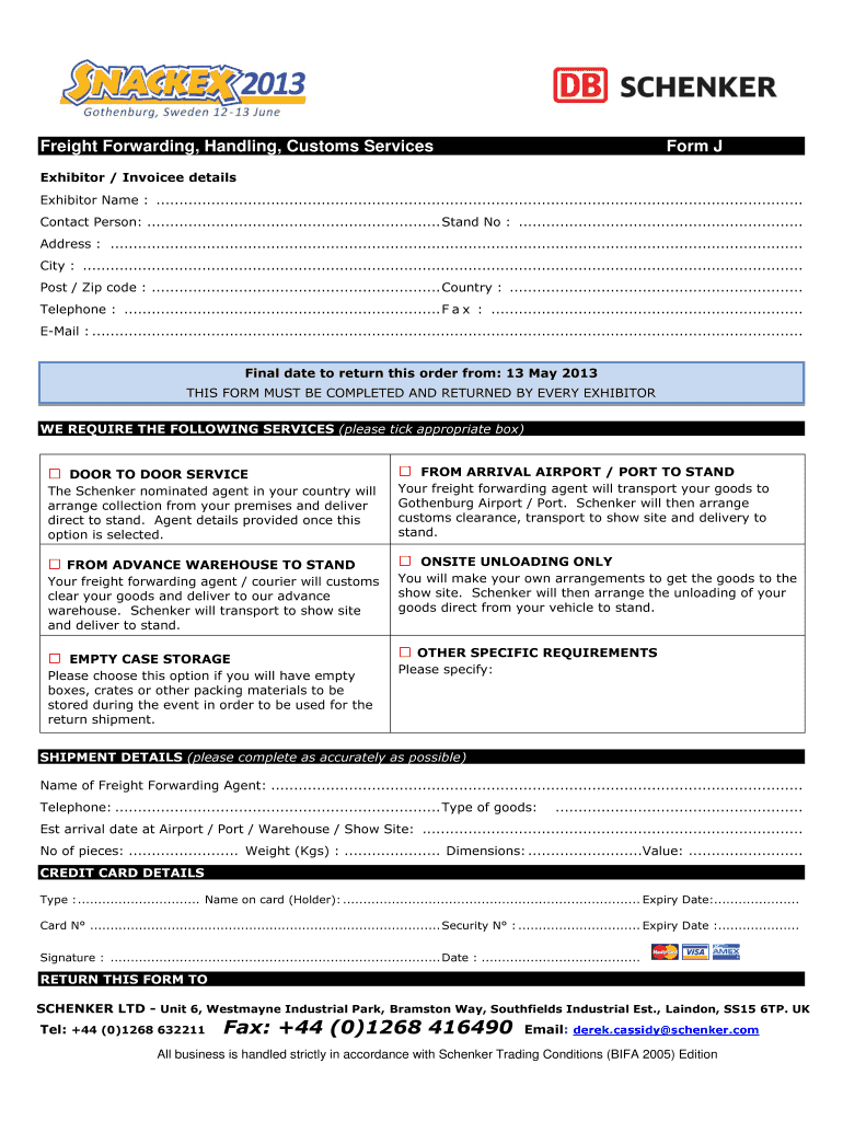 Freight Forwarding, Handling, Customs Services Form J Exhibitor / Invoice details Exhibitor Name : .............................................................................................................................................