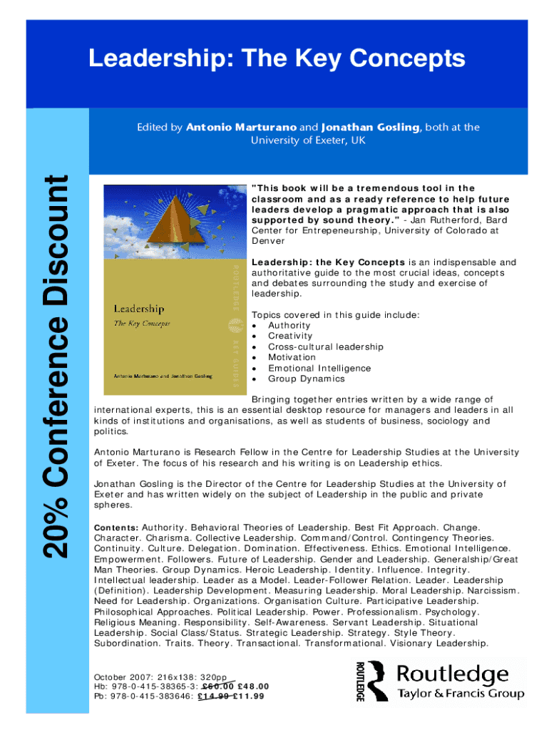 Leadership: The Key Concepts is an indispensable and authoritative guide to the most crucial ideas, concepts and debates surrounding the study and exercise of leadership.