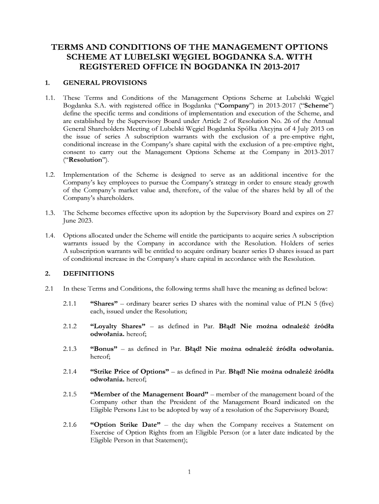 Get the free Terms and Conditions of the Management Options Scheme