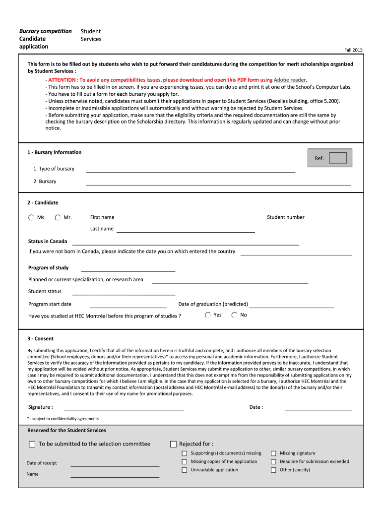 Fill out your bursary competition candidate application online with pdfFiller!