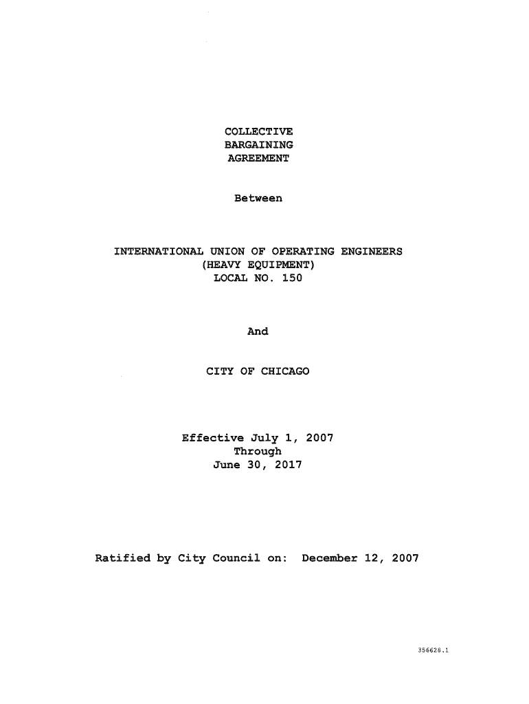 COLLECTIVE BARGAINING AGREEMENT Between INTERNATIONAL UNION OF OPERATING ENGINEERS (HEAVY EQUIPMENT) LOCAL NO. 150 And CITY OF CHICAGO Effective July 1, 2007, Through June 30, 2017, Ratified by City
