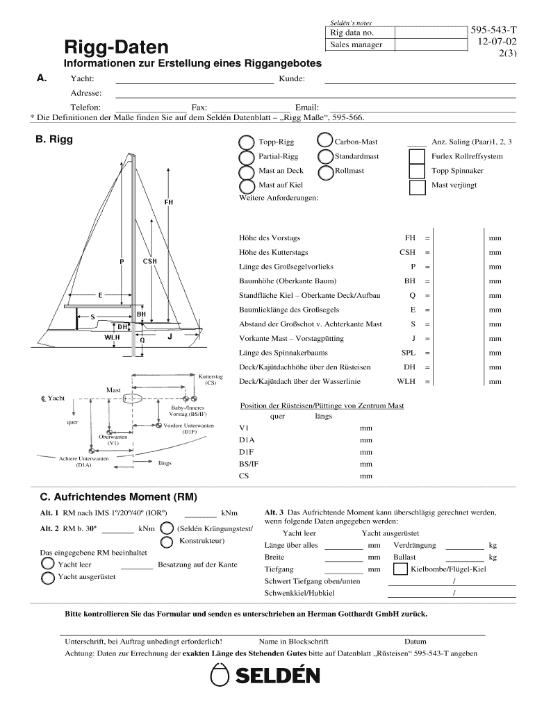 Seed notes 595543T 120702 2×3) Rig data no. Sales manager RiggDaten Informationen our Retelling lines Riggangebotes A. Yacht: Under: Address: Telephone: Fax: Email: * Die Definitionen her Mae finder