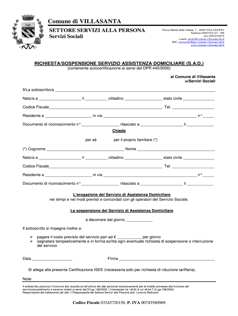 Ottieni il gratuito Richiesta SAD - Comune di Villasanta - comune villasanta mb